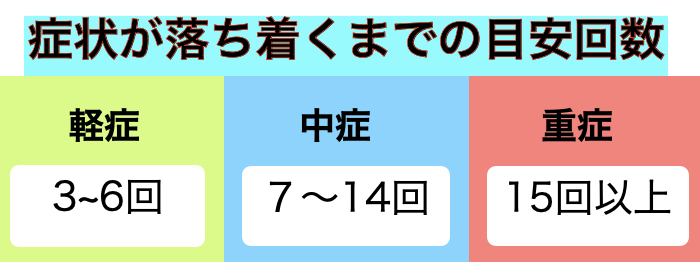 症状を改善するための通院回数や期間は、症状の程度や症状の期間、年齢、現在の身体状況などによって個人差が大きく様々です。